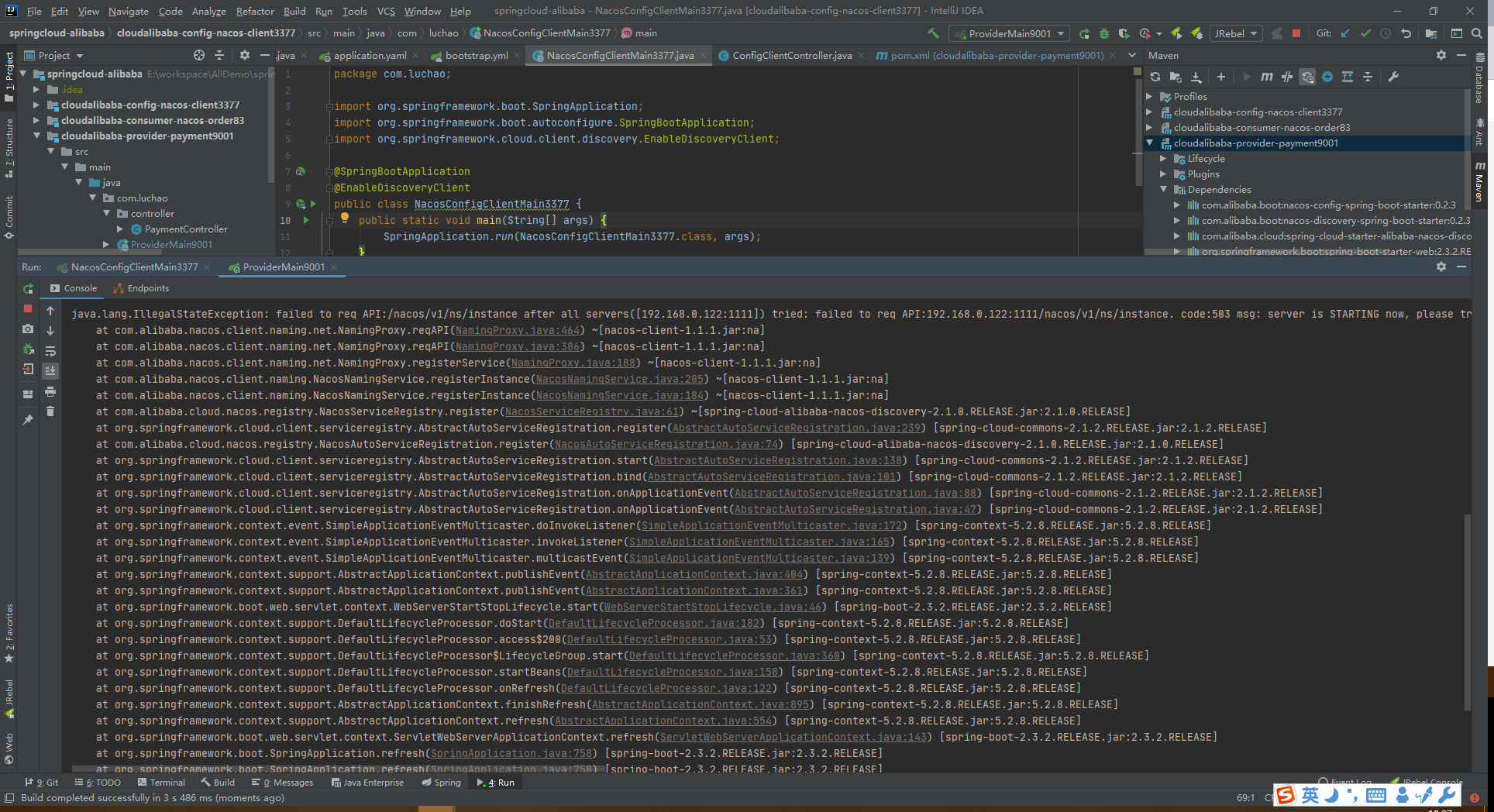 java.lang.IllegalStateException: failed to req API:/nacos/v1/ns/instance after all servers([192.168.0.122:1111]) tried: failed to req API:192.168.0.122:1111/nacos/v1/ns/instance. code:503 msg: server is STARTING now, please try again later!
