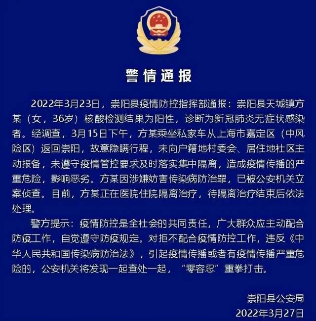 湖北一无症状感染者从中风险地区返回故意隐瞒行程,被立案侦查。